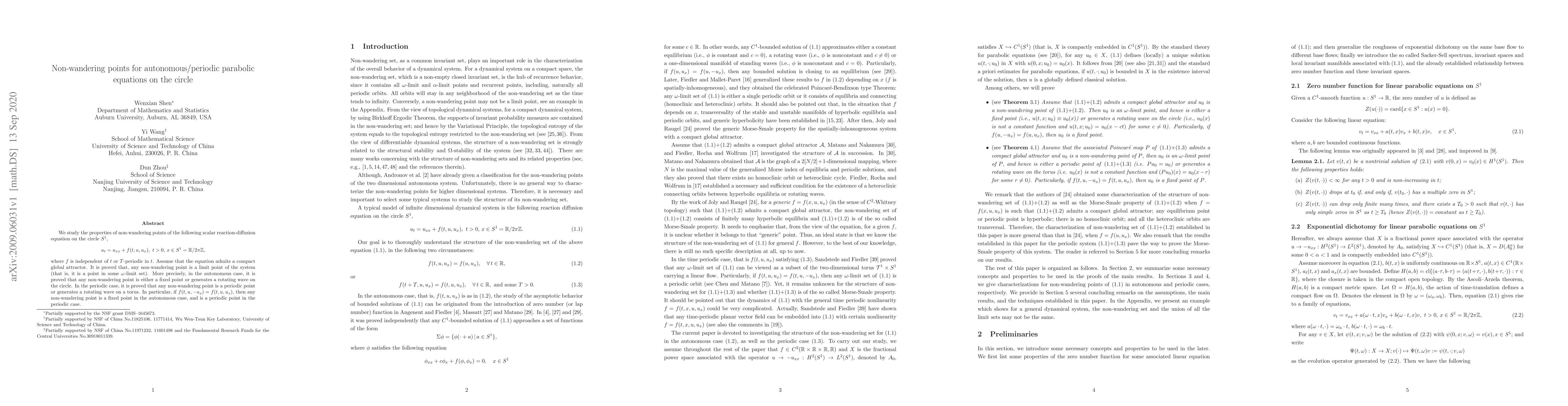 This paper investigates non-wandering points in scalar reaction-diffusion equations on the circle, proving that they are limit points of the system. In the autonomous case, non-wandering points are either fixed points or generate rotating waves; in the periodic case, they are periodic points or generate rotating waves on a torus.