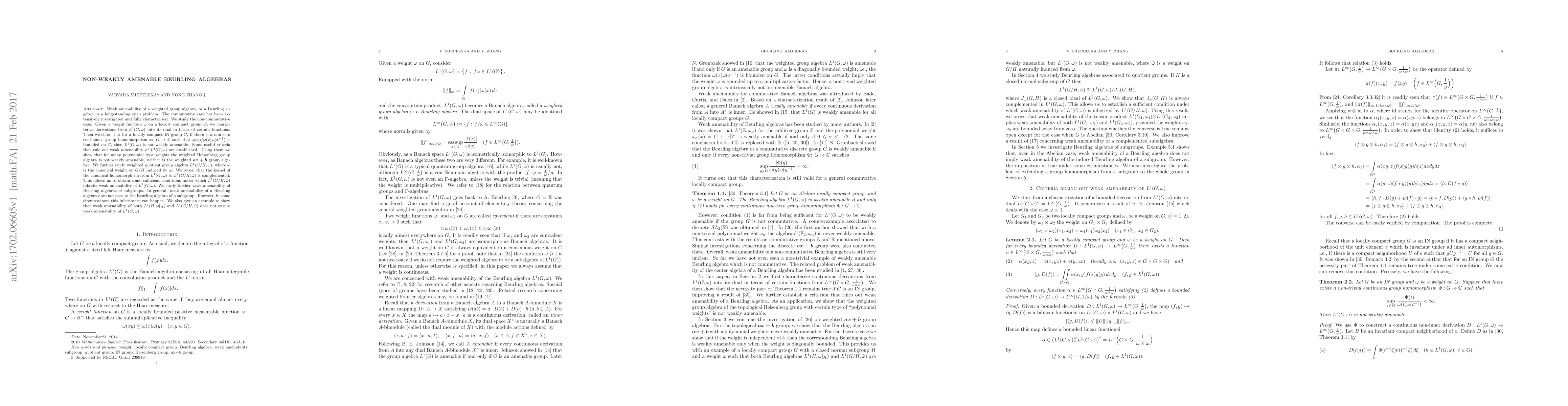 This paper studies non-weakly amenable Beurling algebras, characterizing derivations from $L^1(G, heta)$ into its dual for certain functions, and finding conditions under which weighted group algebras like the Heisenberg group algebra are not weakly amenable.