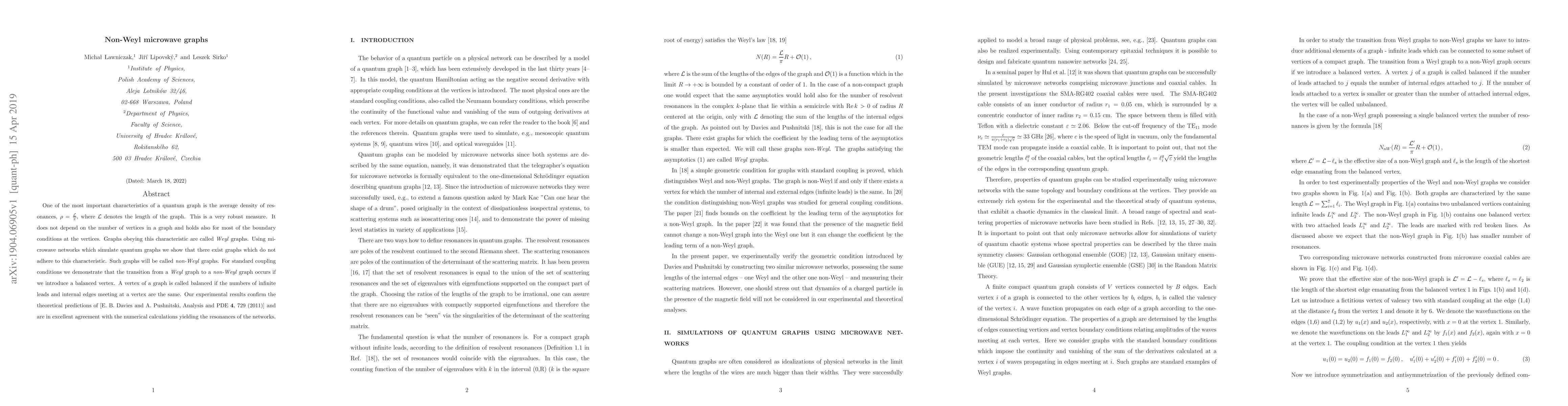 This paper investigates quantum graphs using microwave networks, demonstrating that non-Weyl graphs exist, diverging from the characteristic average density of resonances typical of Weyl graphs. The study finds that introducing a balanced vertex, where the number of infinite leads and internal edges are equal, triggers this transition.