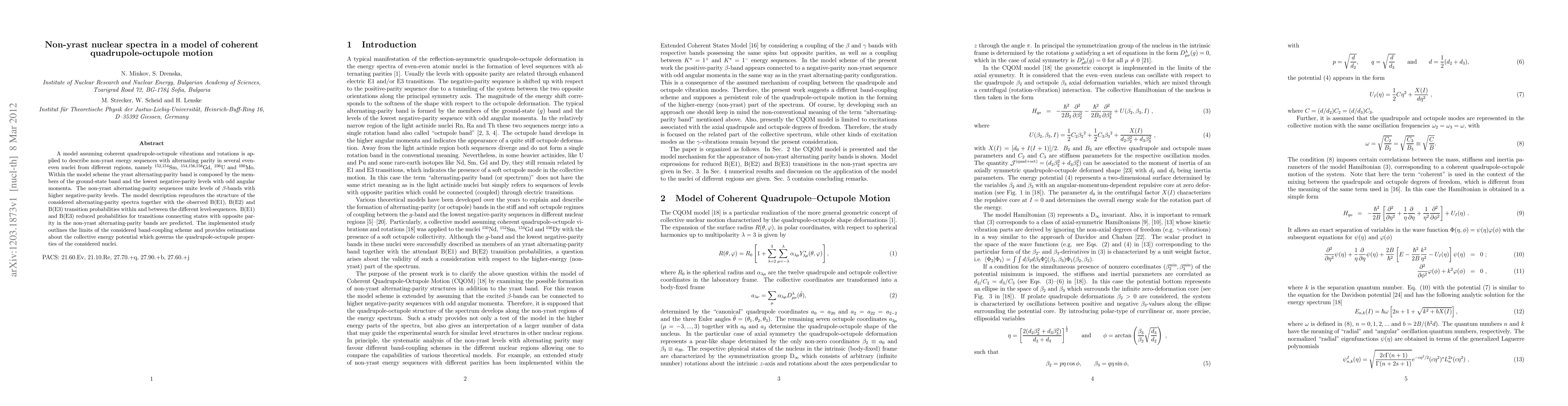 This paper applies a model of coherent quadrupole-octupole motion to describe non-yrast energy sequences in several even-even nuclei, showing good agreement with observed transition probabilities and outlining the model's limitations in predicting collective energy potentials.