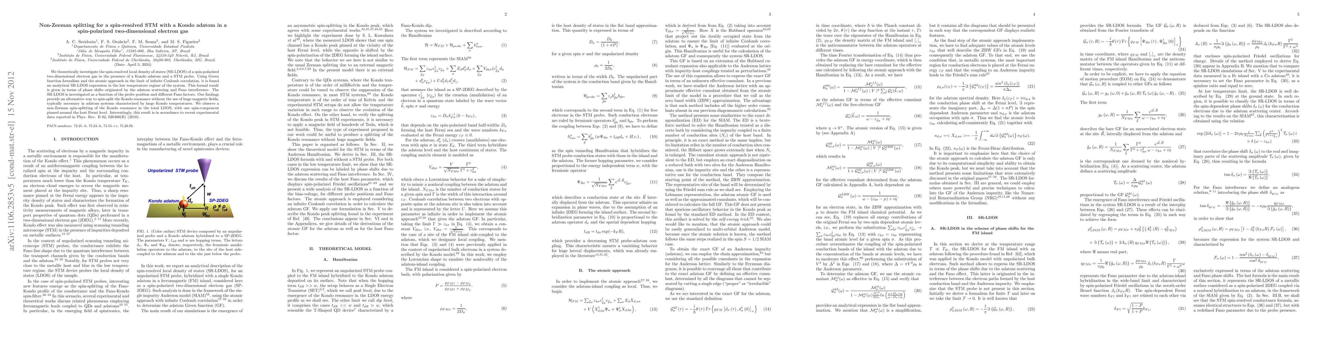 This paper theoretically explores the spin-resolved local density of states (SR-LDOS) near a Kondo adatom in a spin-polarized two-dimensional electron gas, revealing a non-Zeeman spin-splitting mechanism without requiring large magnetic fields. The findings align with recent experimental observations.
