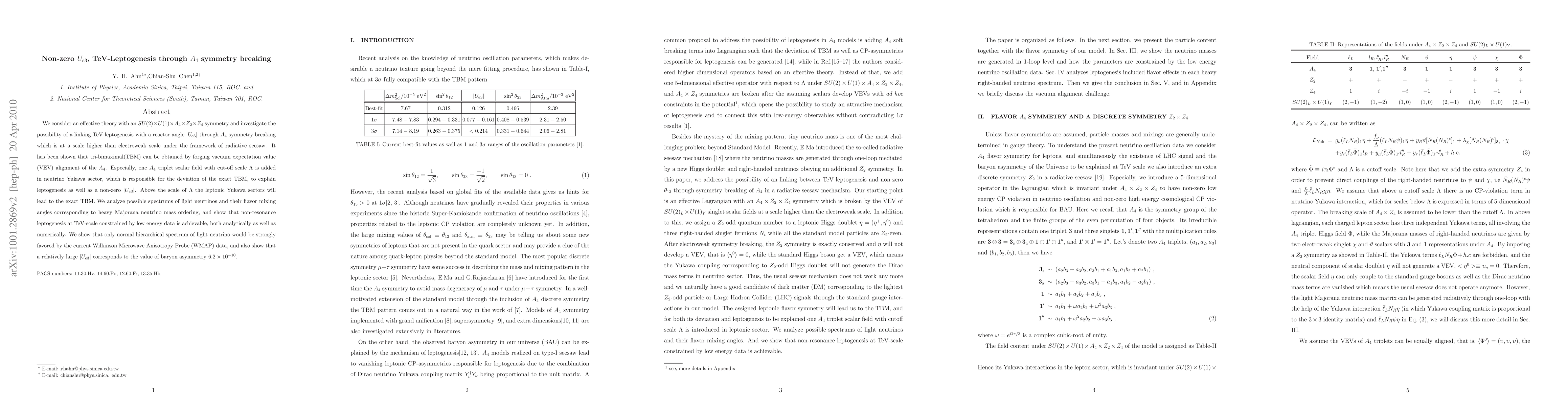 This paper explores a theoretical framework with $SU(2)\times U(1)\times A_{4}$ symmetry to link TeV-scale leptogenesis with a non-zero reactor angle $|U_{e3}|$ through $A_{4}$ symmetry breaking. It proposes that adding an $A_{4}$ triplet scalar field can explain both leptogenesis and $|U_{e3}|$, leading to a normal hierarchical spectrum of light neutrinos favored by WMAP data.