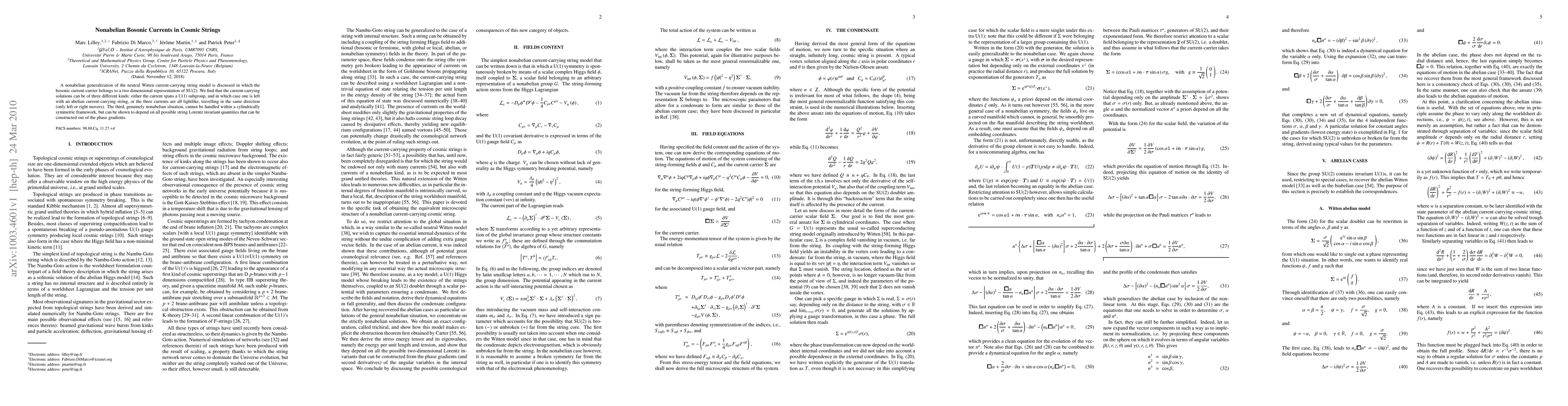 Research explores nonabelian bosonic currents in cosmic strings, revealing three types of current-carrying solutions: abelian, lightlike, and nonabelian cases that depend on Lorentz invariant quantities.