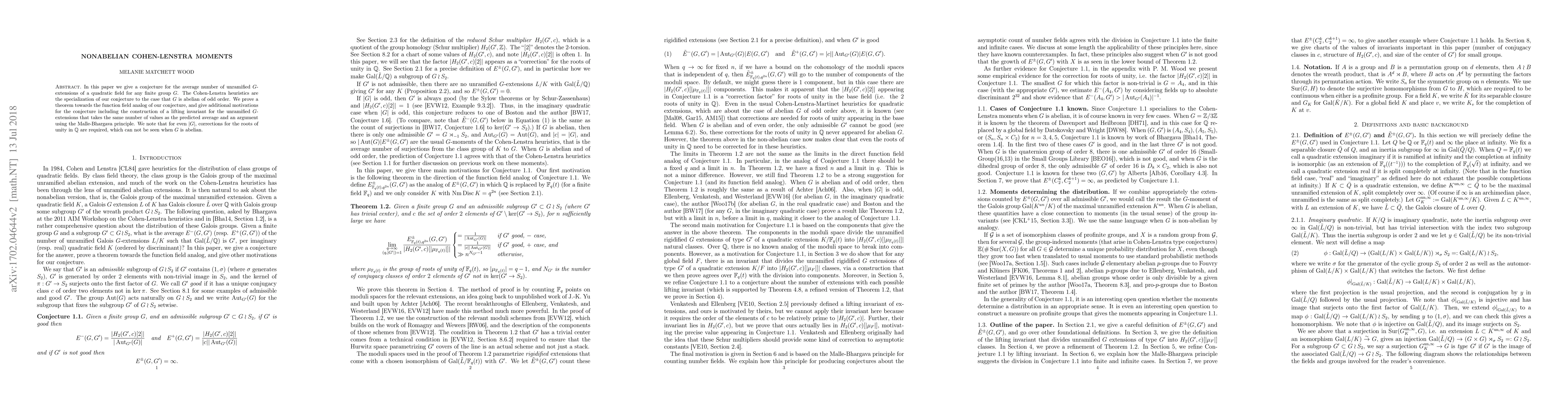 Researchers propose a conjecture for the average number of unramified G-extensions in quadratic fields, with implications for the Cohen-Lenstra heuristics and the Malle-Bhargava principle.