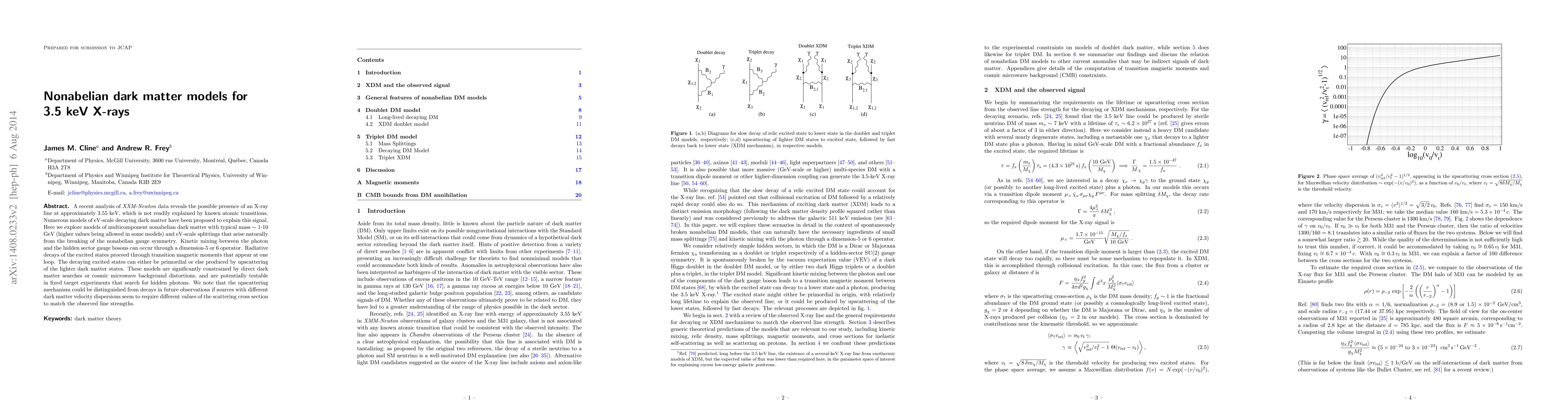 This paper investigates multicomponent nonabelian dark matter models to explain the 3.5 keV X-ray line observed in XMM-Newton data, proposing that kinetic mixing and radiative decays through hidden sector gauge bosons could produce this signal. These models face constraints from direct dark matter searches and potential future tests in fixed target experiments.