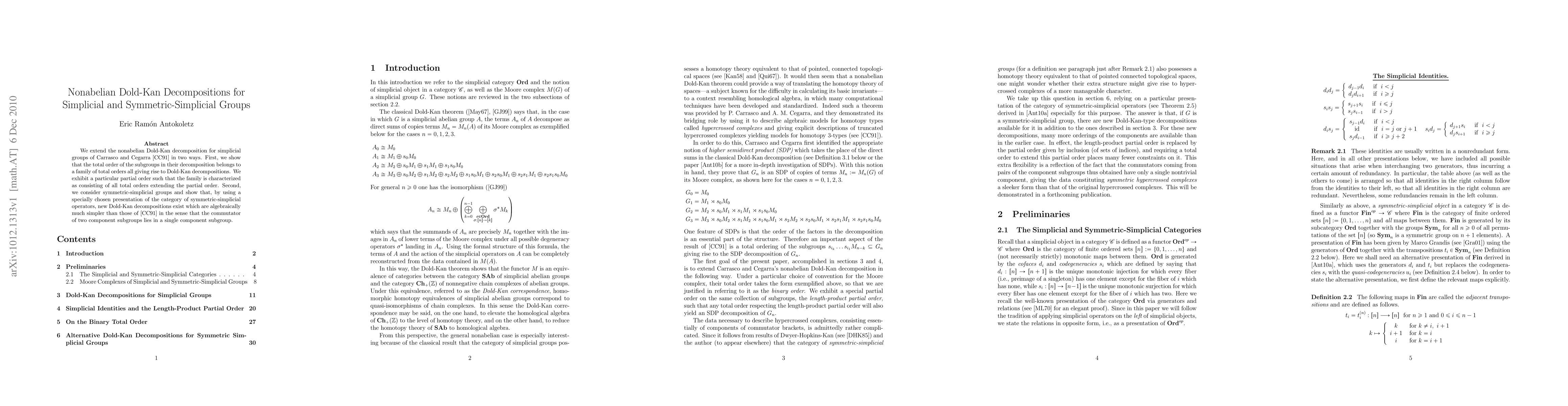 This paper extends the nonabelian Dold-Kan decomposition for simplicial groups by showing that the total orders used in the decompositions are part of a broader family, and introduces simpler decompositions for symmetric-simplicial groups where the commutator of subgroups lies within a single subgroup.