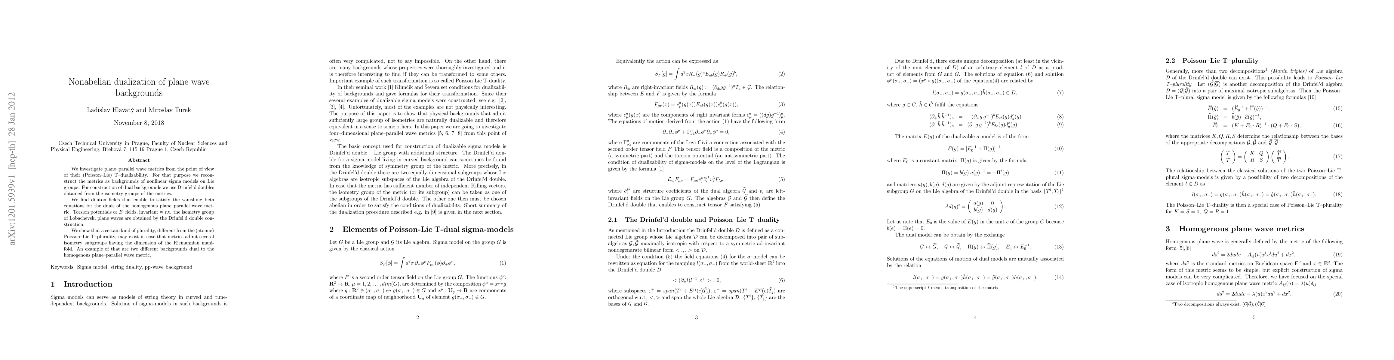 This paper explores the (Poisson-Lie) T-dualizability of plane-parallel wave metrics by reconstructing them as backgrounds of nonlinear sigma models on Lie groups. It utilizes Drinfel'd doubles from isometry groups to construct dual backgrounds, revealing a form of duality plurality beyond standard Poisson-Lie T-plurality.
