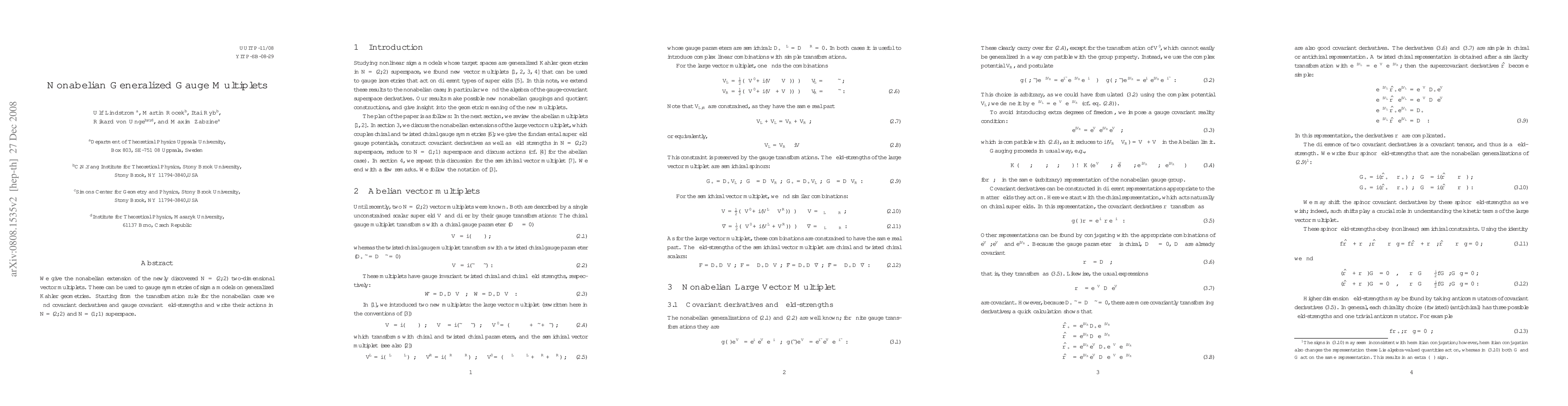 We give the nonabelian extension of the newly discovered N = (2, 2) two-dimensional vector multiplets. These can be used to gauge symmetries of sigma models on generalized Kahler geometries. Starting from the transformation rule for the nonabelian case we find covariant derivatives and gauge covariant field-strengths and write their actions in N = (2, 2) and N = (1, 1) superspace.