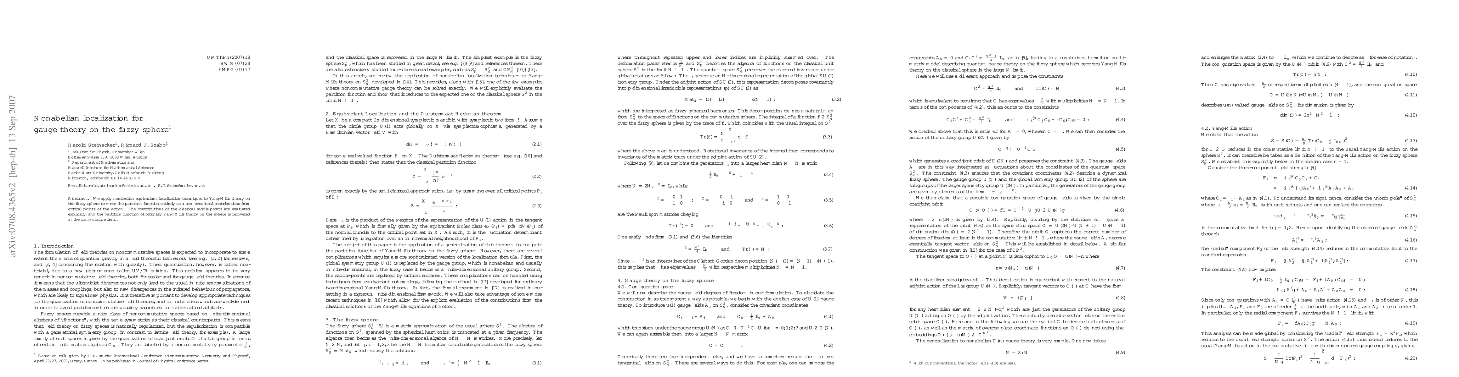 We apply nonabelian equivariant localization techniques to Yang-Mills theory on the fuzzy sphere to write the partition function entirely as a sum over local contributions from critical points of the action. The contributions of the classical saddle-points are evaluated explicitly, and the partition function of ordinary Yang-Mills theory on the sphere is recovered in the commutative limit.