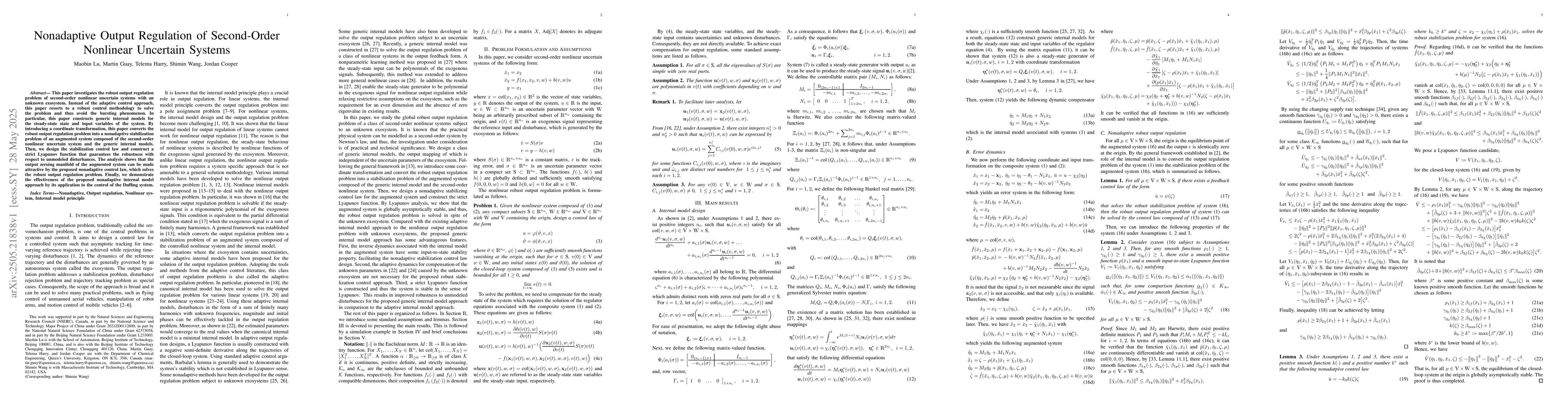 Researchers develop a nonadaptive control method to regulate output in uncertain second-order nonlinear systems without using adaptive control, avoiding the bursting phenomenon. Their approach solves the robust output regulation problem with guaranteed stability.
