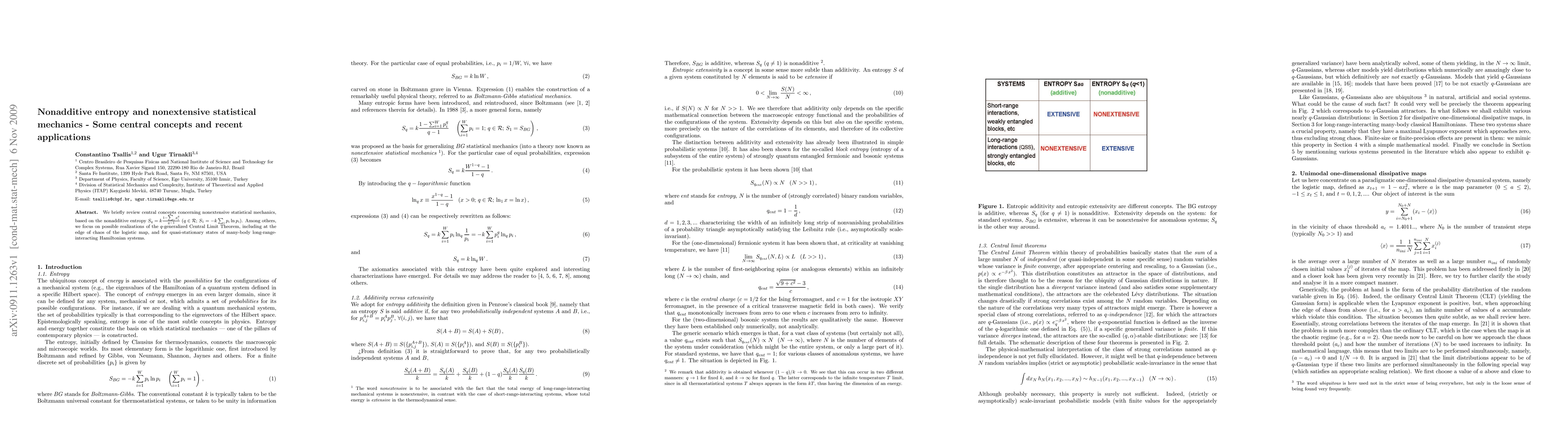 This paper reviews nonextensive statistical mechanics, emphasizing nonadditive entropy $S_q$ and its applications. It explores the $q$-generalized Central Limit Theorem, particularly in chaotic systems and quasi-stationary states of long-range interacting systems.