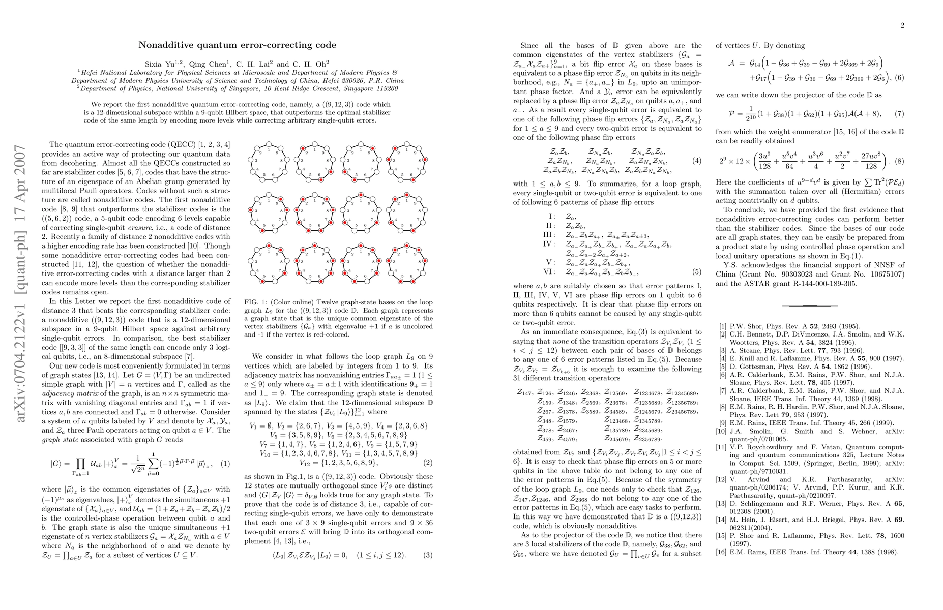 This work is novel because it uses a loop graph to construct a non-additive error-correcting code, which is different from existing research