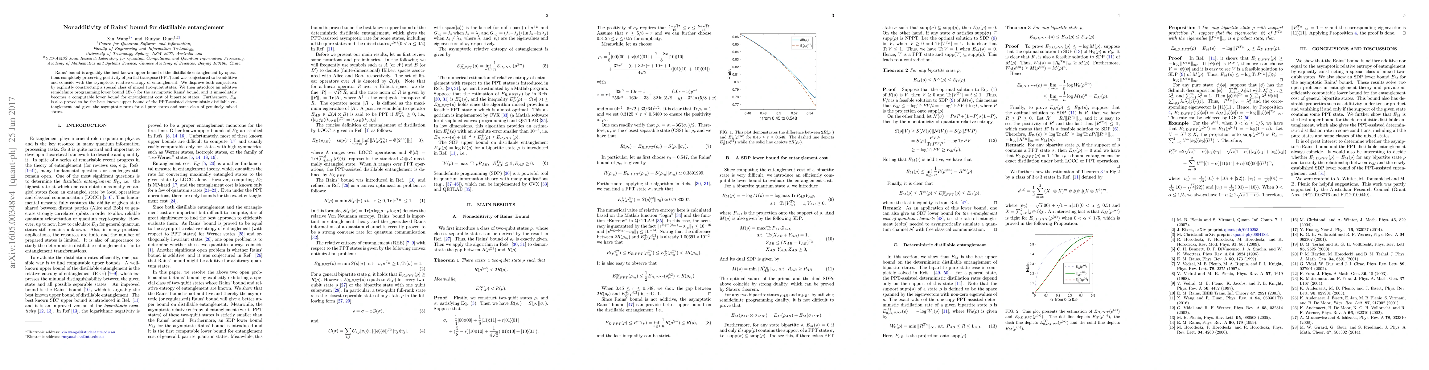 Rains' bound is arguably the best known upper bound of the distillable entanglement by operations completely preserving positivity of partial transpose (PPT) and was conjectured to be additive and coincide with the asymptotic relative entropy of entanglement. We disprove both conjectures by explicitly constructing a special class of mixed two-qubit states. We then introduce an additive semidefinite programming lower bound ($E_M$) for the asymptotic Rains' bound, and it immediately becomes a computable lower bound for entanglement cost of bipartite states. Furthermore, $E_M$ is also proved to be the best known upper bound of the PPT-assisted deterministic distillable entanglement and gives the asymptotic rates for all pure states and some class of genuinely mixed states.