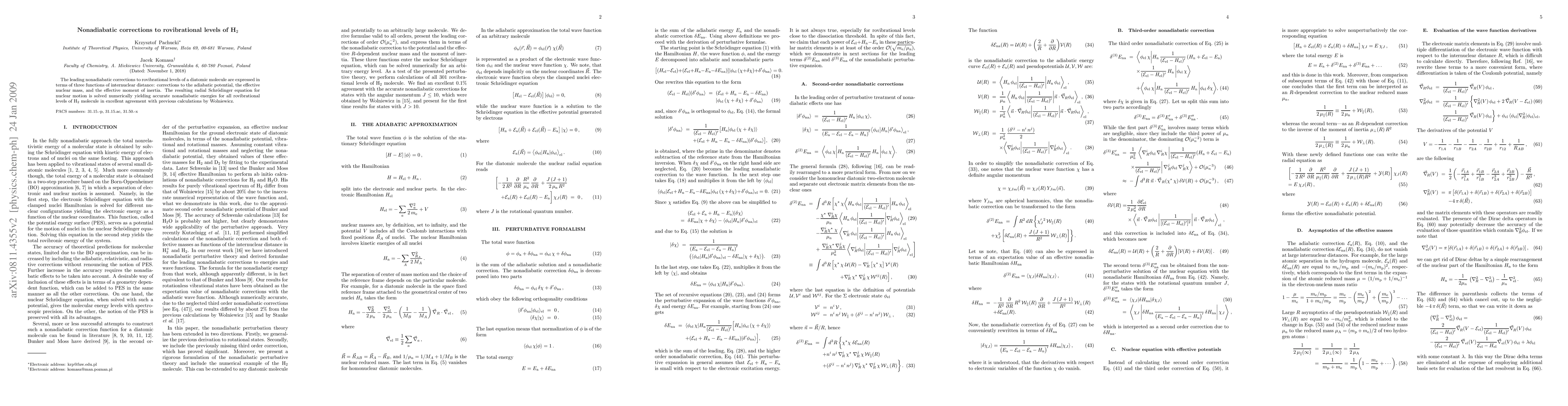 The work presents a rigorous derivation of pseudopotential expressions and numerical validation of nonadiabatic perturbation theory for rovibrational levels, confirming previous results by Wolniewicz with high precision.