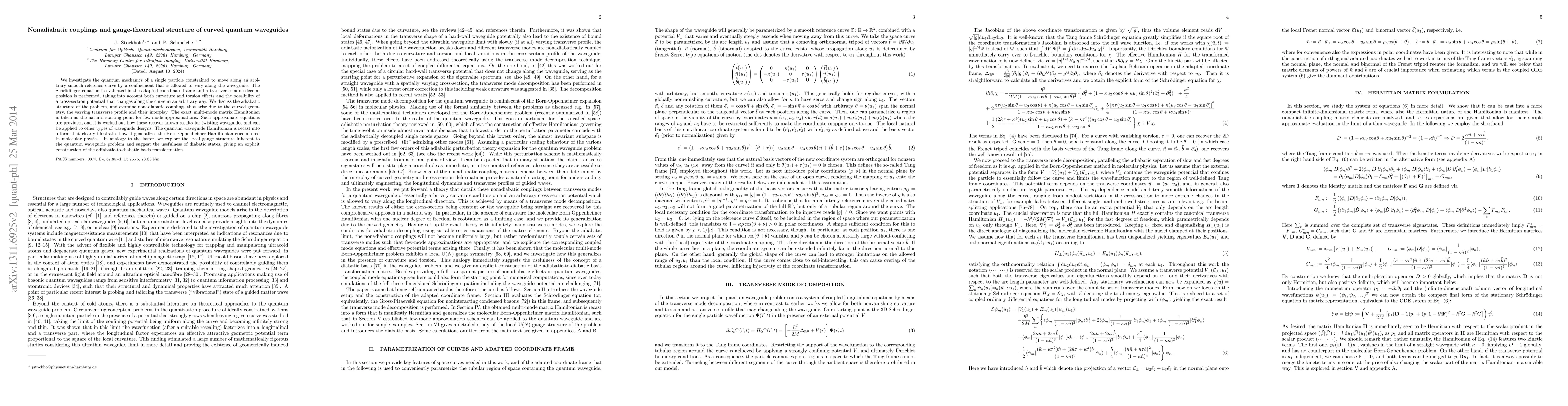 This paper investigates the quantum mechanics of curved waveguides with varying confinement, finding nonadiabatic couplings that arise from the curved geometry and torsion effects, and suggesting a way to recast the Hamiltonian into a gauge-theoretical form.