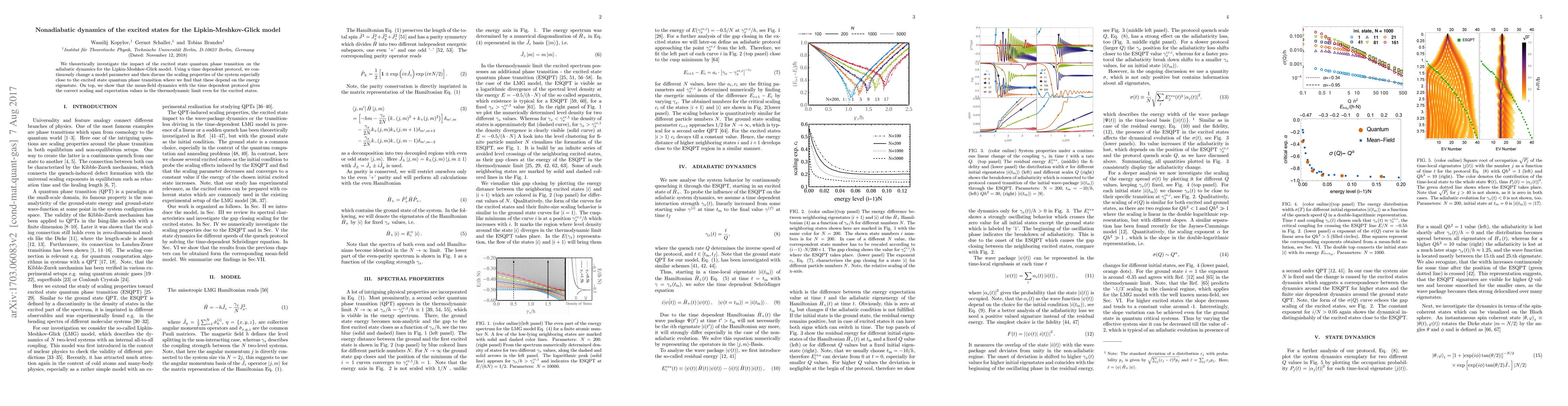 Researchers investigate how changing a model parameter affects the dynamics of excited states in the Lipkin-Meshkov-Glick model, finding that scaling properties depend on the energy eigenstate. They also show that mean-field dynamics accurately capture these effects even near quantum phase transitions.