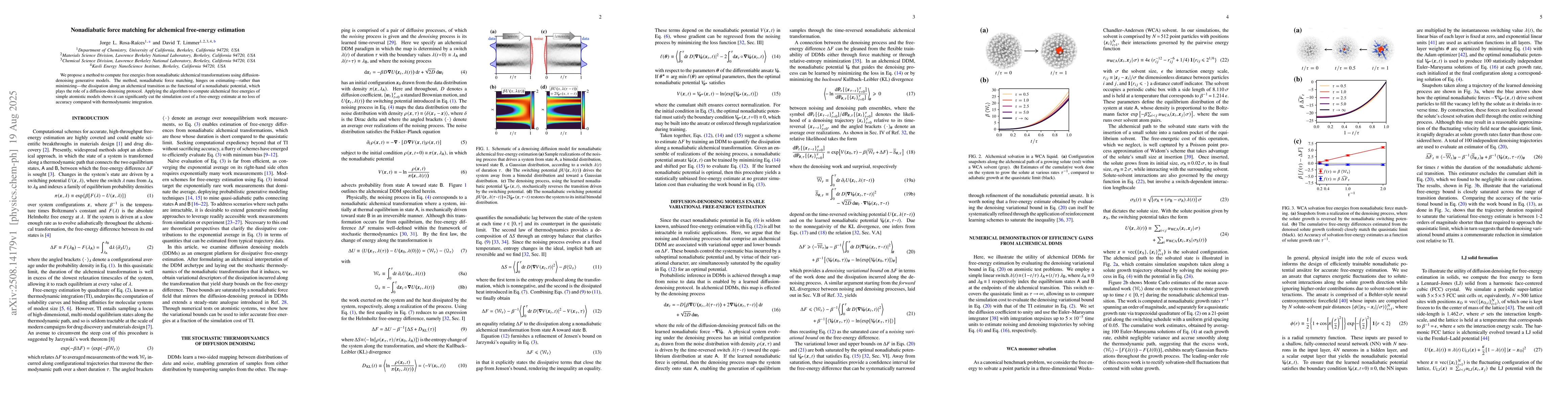 The introduction of nonadiabatic force matching, a novel method for free-energy estimation using diffusion-denoising generative models, which estimates dissipation along alchemical transitions as a functional of a nonadiabatic potential.