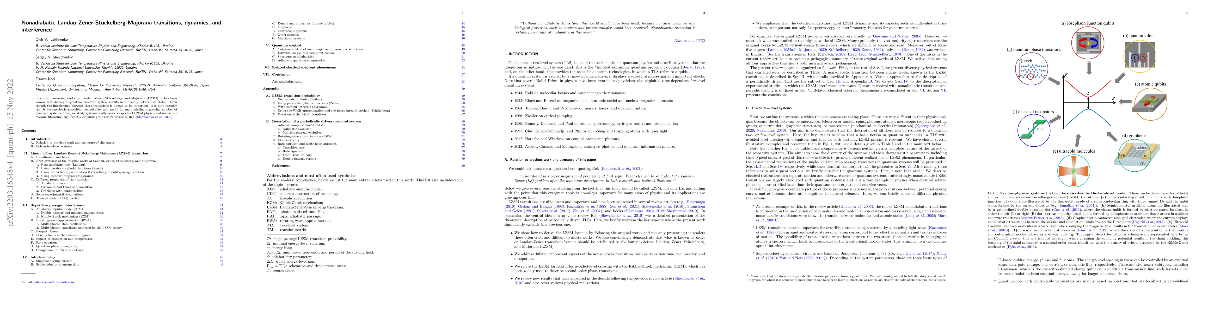 Since the pioneering works by Landau, Zener, St\"uckelberg, and Majorana (LZSM), it has been known that driving a quantum two-level system results in tunneling between its states. Even though the interference between these transitions is known to be important, it is only recently that it became both accessible, controllable, and useful for engineering quantum systems. Here, we study systematically various aspects of LZSM physics and review the relevant literature, significantly expanding the review article in [Shevchenko, S. N., S. Ashhab, and F. Nori (2010), "Landau-Zener-St\"uckelberg interferometry," Phys. Rep. 492, 1].