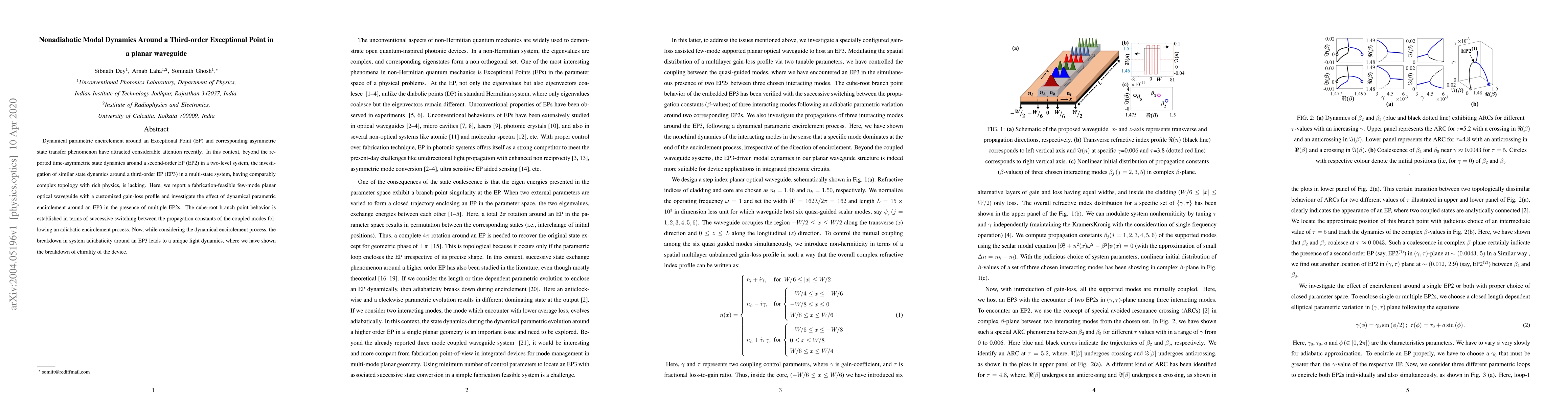 This paper investigates the dynamics of a few-mode planar optical waveguide around a third-order exceptional point (EP3), demonstrating the breakdown of adiabaticity and chirality during dynamical parametric encirclement, contrasting with the behavior observed around second-order EPs. The study highlights the complex state transfer phenomena and rich physics associated with EP3.