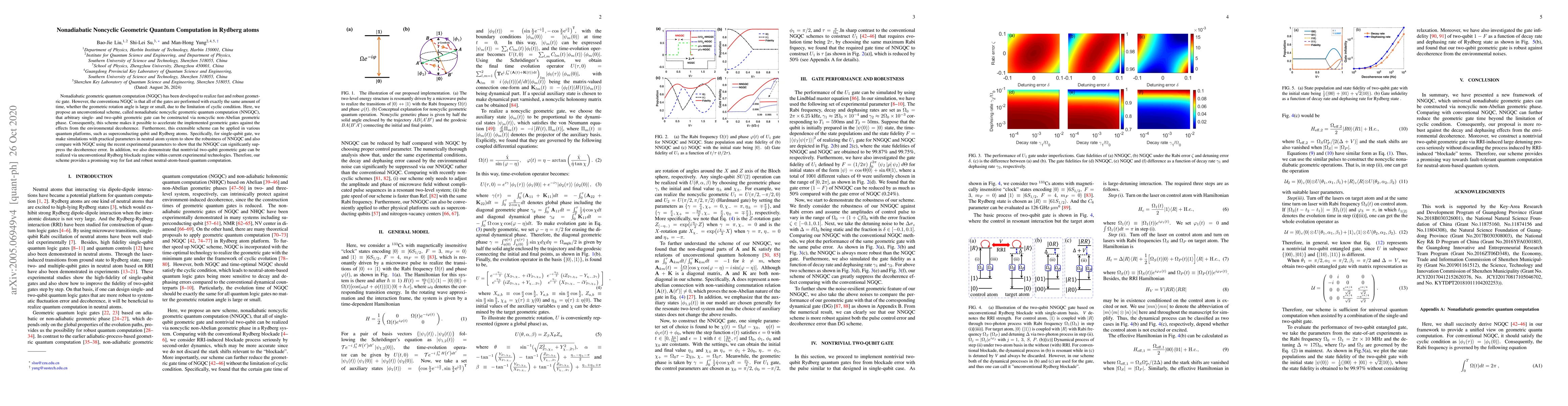 Nonadiabatic geometric quantum computation (NGQC) has been developed to realize fast and robust geometric gate. However, the conventional NGQC is that all of the gates are performed with exactly the sameamount of time, whether the geometric rotation angle is large or small, due to the limitation of cyclic condition. Here, we propose an unconventional scheme, called nonadiabatic noncyclic geometric quantum computation(NNGQC), that arbitrary single- and two-qubit geometric gate can be constructed via noncyclic non-Abeliangeometric phase. Consequently, this scheme makes it possible to accelerate the implemented geometric gatesagainst the effects from the environmental decoherence. Furthermore, this extensible scheme can be applied invarious quantum platforms, such as superconducting qubit and Rydberg atoms. Specifically, for single-qubit gate,we make simulations with practical parameters in neutral atom system to show the robustness of NNGQC and also compare with NGQC using the recent experimental parameters to show that the NNGQC can significantly suppress the decoherence error. In addition, we also demonstrate that nontrivial two-qubit geometric gate can berealized via unconventional Rydberg blockade regime within current experimental technologies. Therefore, ourscheme provides a promising way for fast and robust neutral-atom-based quantum computation.