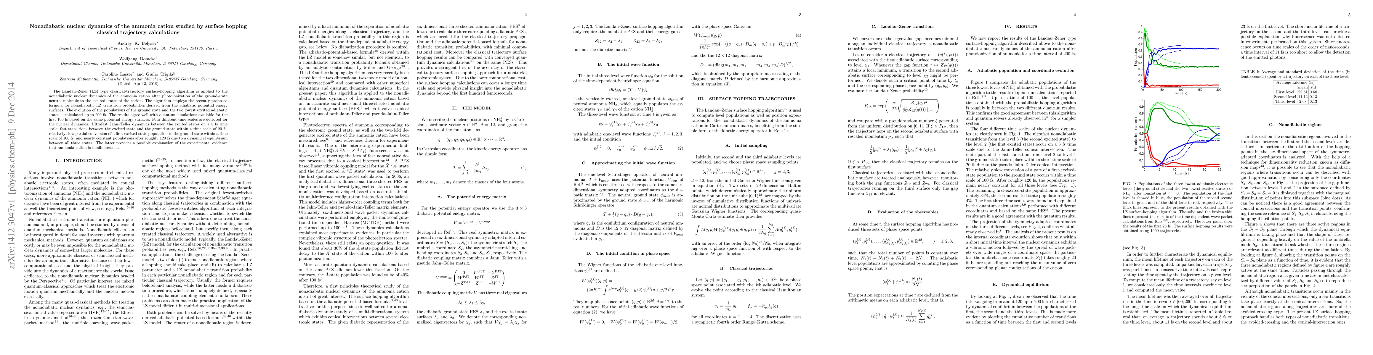This study uses a Landau-Zener surface-hopping algorithm to simulate the nonadiabatic dynamics of the ammonia cation post-photoionization, revealing four distinct time scales for nuclear dynamics and suggesting the cation's nonfluorescent nature due to a dynamical equilibrium.