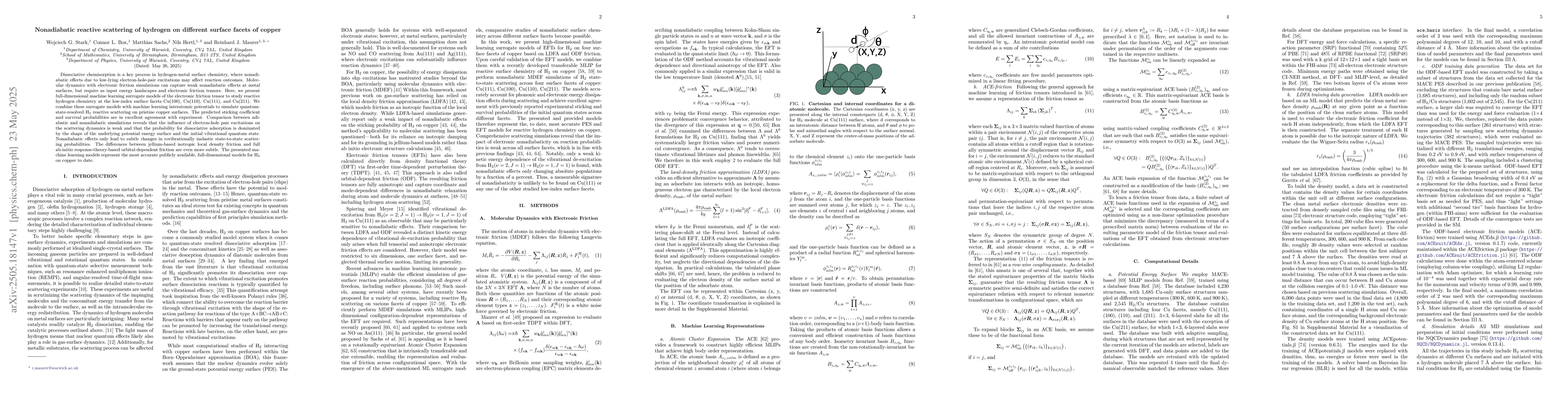 Researchers developed machine learning models to simulate hydrogen adsorption on copper surfaces, finding that nonadiabatic effects have a minor impact on reaction outcomes, with initial vibrational state and surface shape being dominant factors.