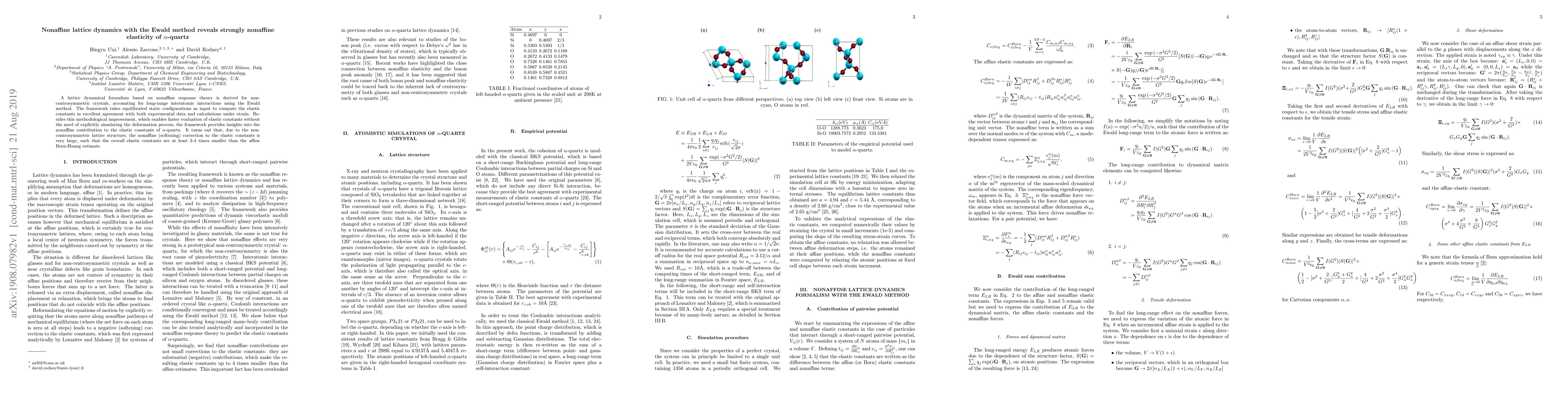 A lattice dynamical formalism based on nonaffine response theory is derived for non-centrosymmetric crystals, accounting for long-range interatomic interactions using the Ewald method. The framework takes equilibrated static configurations as input to compute the elastic constants in excellent agreement with both experimental data and calculations under strain. Besides this methodological improvement, which enables faster evaluation of elastic constants without the need of explicitly simulating the deformation process, the framework provides insights into the nonaffine contribution to the elastic constants of {\alpha}-quartz. It turns out that, due to the non-centrosymmetric lattice structure, the nonaffine (softening) correction to the elastic constants is very large, such that the overall elastic constants are at least 3-4 times smaller than the affine Born-Huang estimat
