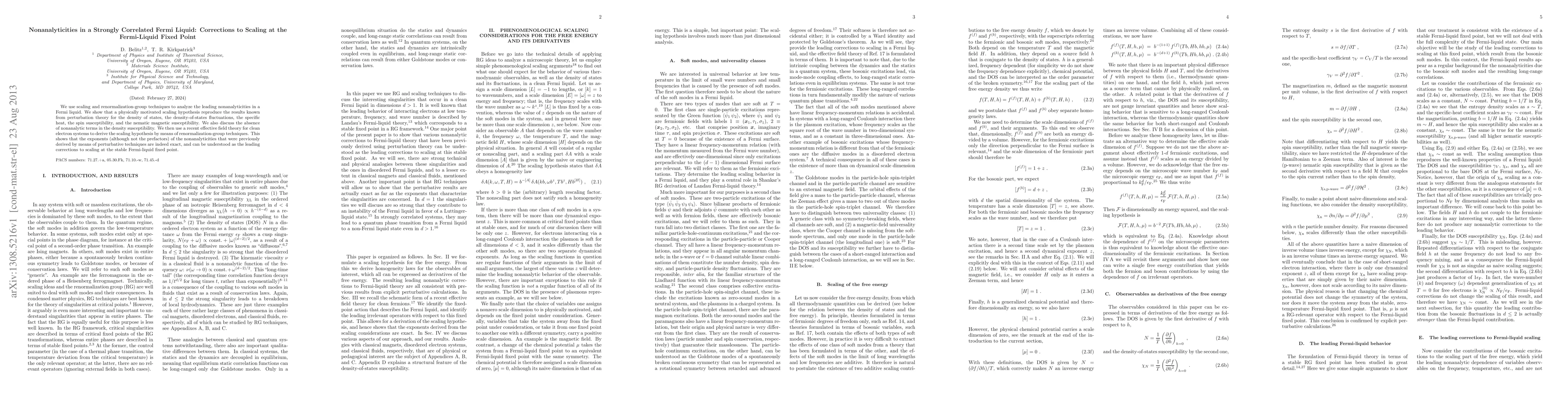 This paper utilizes scaling and renormalization-group methods to investigate nonanalyticities in a strongly correlated Fermi liquid, confirming previous perturbative results for various thermodynamic properties. It further demonstrates that these nonanalytic corrections are exact at the Fermi-liquid fixed point, providing leading corrections to scaling.