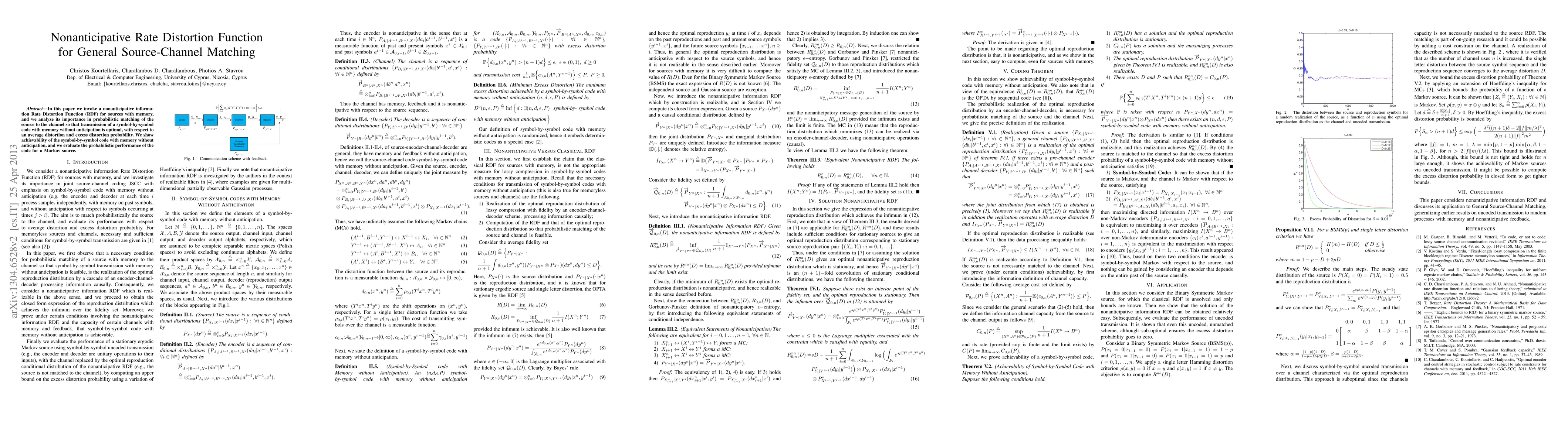 This paper introduces a nonanticipative Rate Distortion Function for sources with memory and demonstrates its significance in optimally matching sources to channels. It proves the achievability of a symbol-by-symbol code with memory, evaluating its performance for Markov sources.