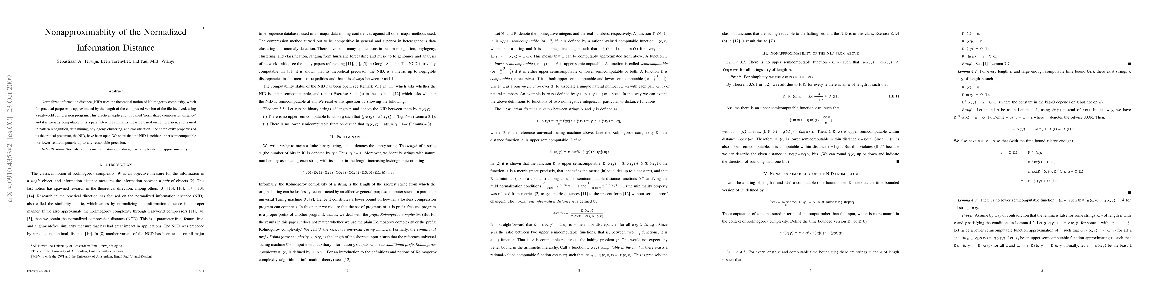 The normalized information distance (NID) is theoretically based on Kolmogorov complexity but is practically approximated using compression length. The paper demonstrates that NID cannot be approximated computationally, neither upper nor lower semicomputably, up to any reasonable precision.