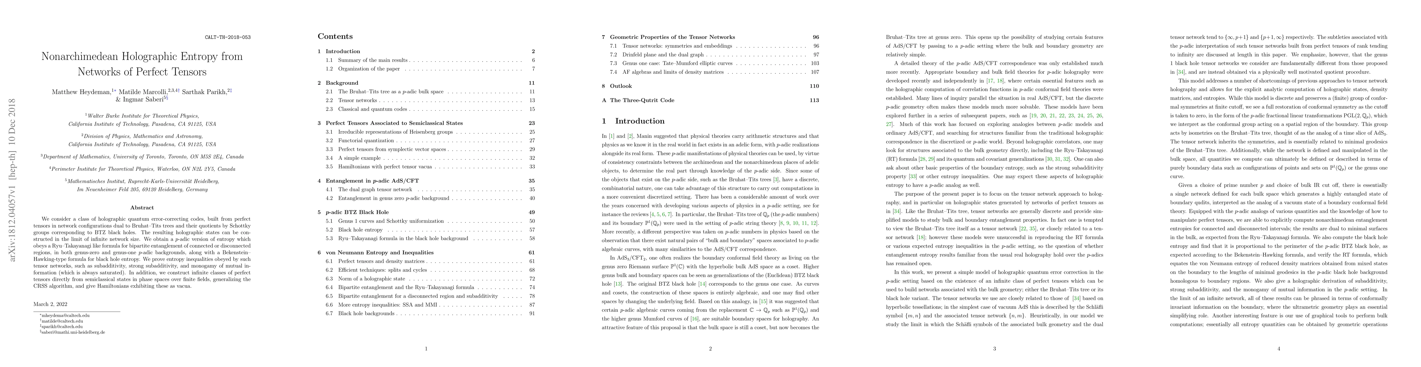 This paper explores holographic quantum error-correcting codes derived from perfect tensor networks dual to Bruhat-Tits trees and their quotients, yielding a $p$-adic holographic entropy formula. It establishes entropy inequalities and constructs perfect tensors from semiclassical states over finite fields.