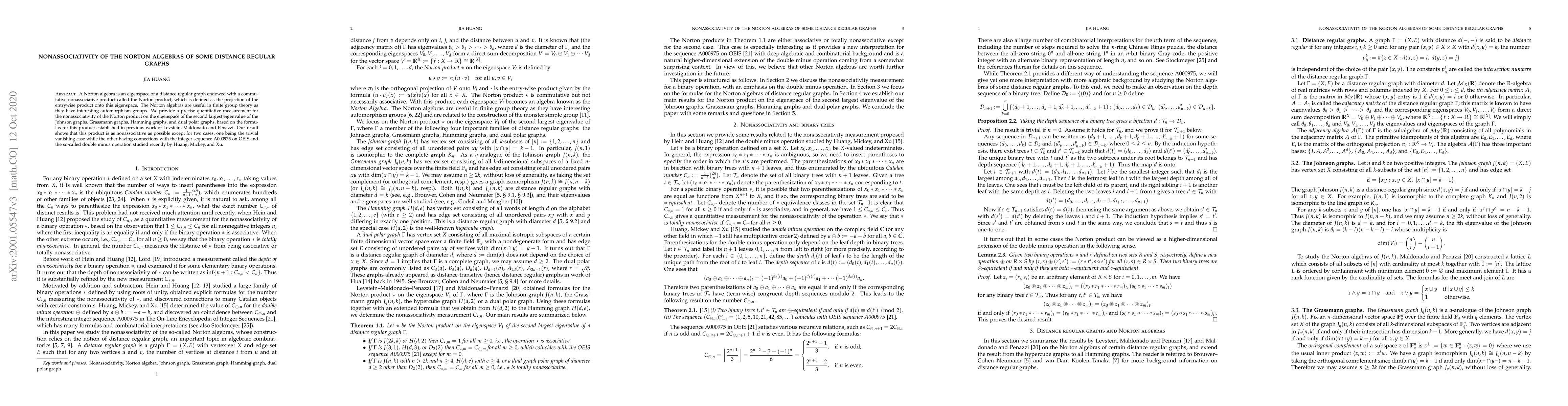 This paper quantifies the nonassociativity of Norton algebras in distance regular graphs, specifically for Johnson, Grassman, Hamming, and dual polar graphs. It reveals that the Norton product is highly nonassociative, with exceptions linked to trivial cases and the integer sequence A000975, involving the double minus operation.