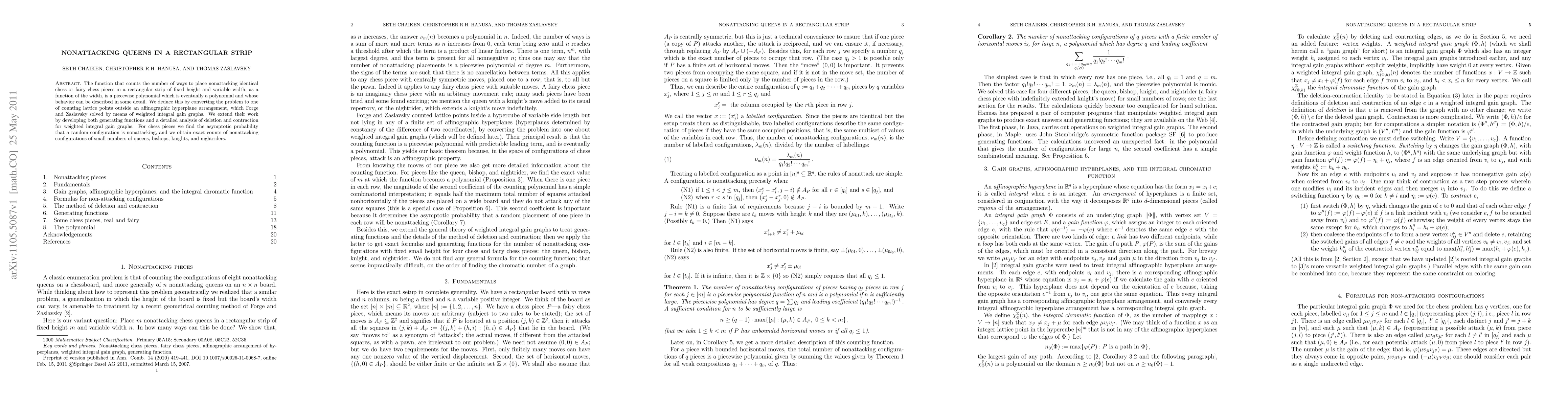 Researchers solved a chess puzzle by using a mathematical technique to count nonattacking queen placements in a rectangular strip, with key findings including asymptotic probabilities and exact counts for various piece types.