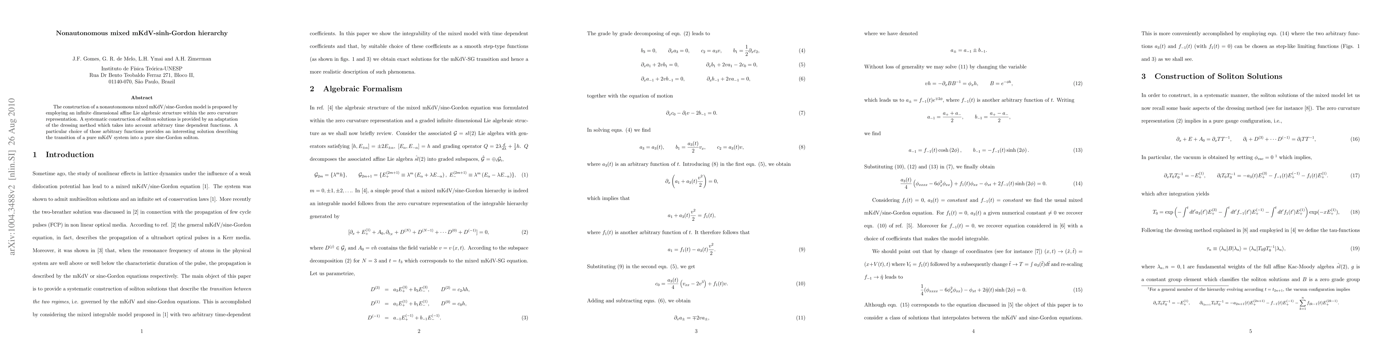 This paper introduces a nonautonomous mixed mKdV-sinh-Gordon model that uses an infinite dimensional affine Lie algebraic structure to construct soliton solutions adaptable to arbitrary time-dependent functions.