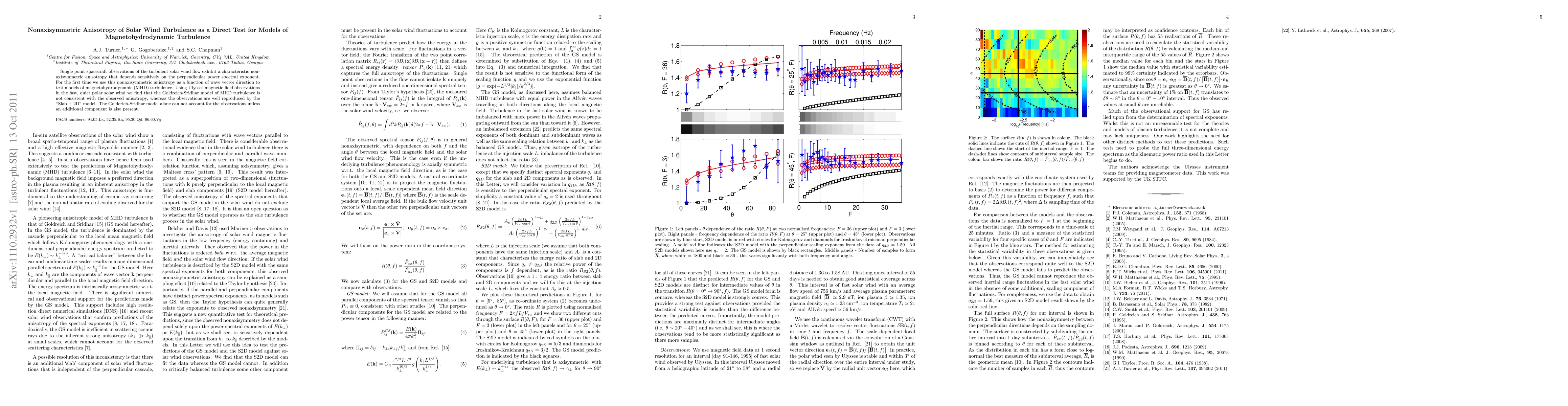 This paper tests models of magnetohydrodynamic turbulence using nonaxisymmetric anisotropy in solar wind turbulence observed by the Ulysses spacecraft. The Goldreich-Sridhar model fails to match the observed anisotropy, while the "Slab + 2D" model provides a better fit.
