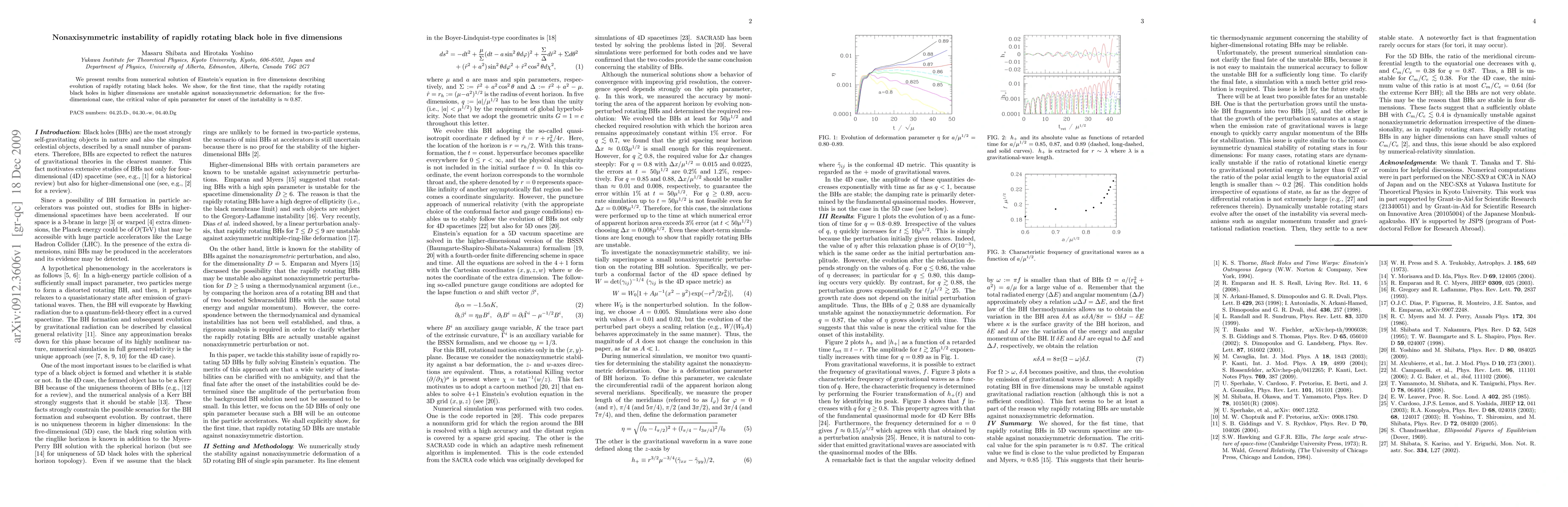 This paper presents numerical solutions of five-dimensional Einstein's equations, revealing that rapidly rotating black holes in higher dimensions are unstable against nonaxisymmetric deformations, with a critical spin parameter of approximately 0.87 for the five-dimensional case.