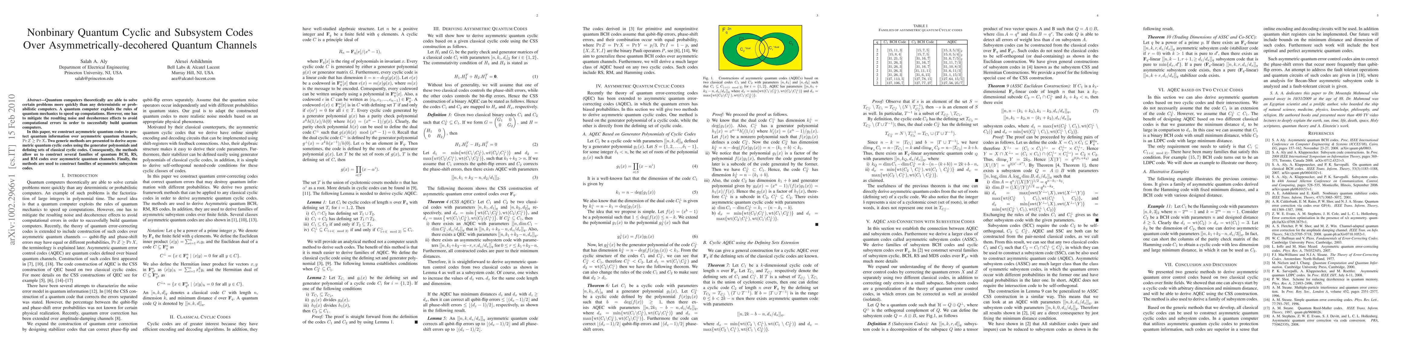 This paper constructs asymmetric quantum cyclic and subsystem codes to protect quantum information over asymmetrically-decohered quantum channels, where the probability of Z-errors exceeds that of X-errors. It presents two methods to derive these codes, leading to families of quantum BCH, RS, and RM codes, and asymmetric subsystem codes.