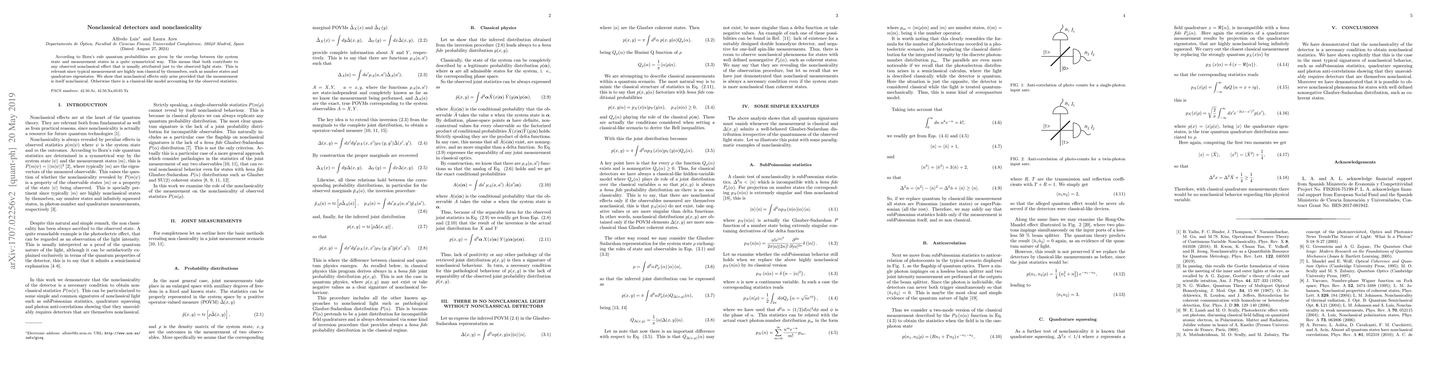 According to Born's rule quantum probabilities are given by the overlap between the system state and measurement states in a quite symmetrical way. This means that both contribute to any observed nonclassical effect that is usually attributed just to the observed light state. This is relevant since typical measurement are highly nonclassical by themselves, such as number states and quadrature eigenstates. We show that nonclassical effects only arise provided that the measurement is itself nonclassical. Otherwise there is a classical-like model accounting for the observed statistics.