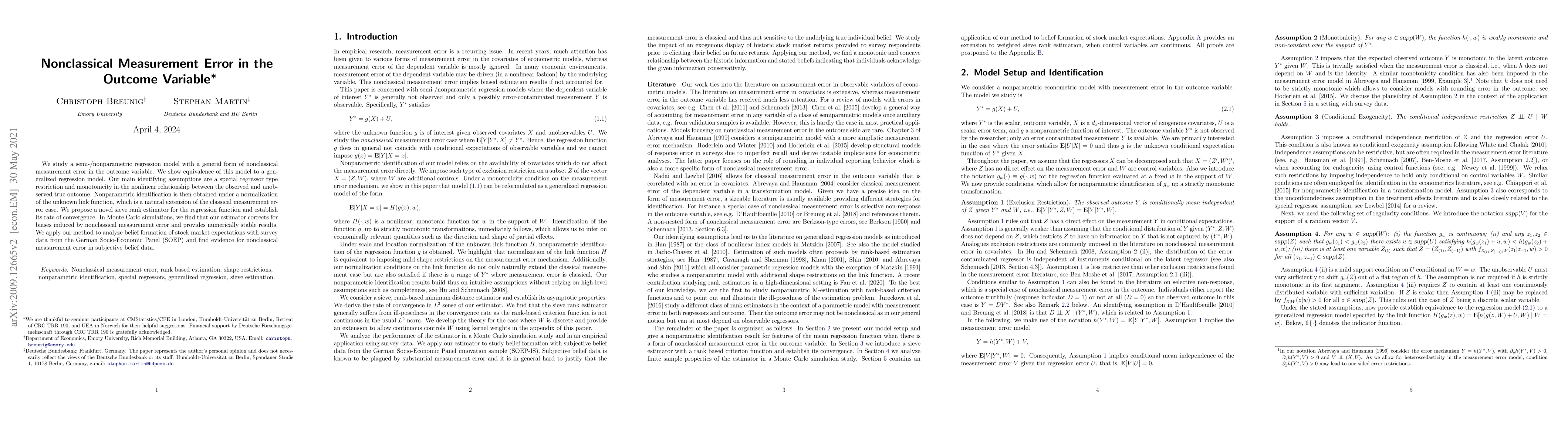 This paper proposes a novel semi-/nonparametric regression model to address nonclassical measurement error in the outcome variable, establishing its equivalence to a generalized regression model. The authors introduce a new sieve rank estimator for the regression function, demonstrating its effectiveness in Monte Carlo simulations and applying it to analyze stock market expectations from the German Socio-Economic Panel (SOEP).