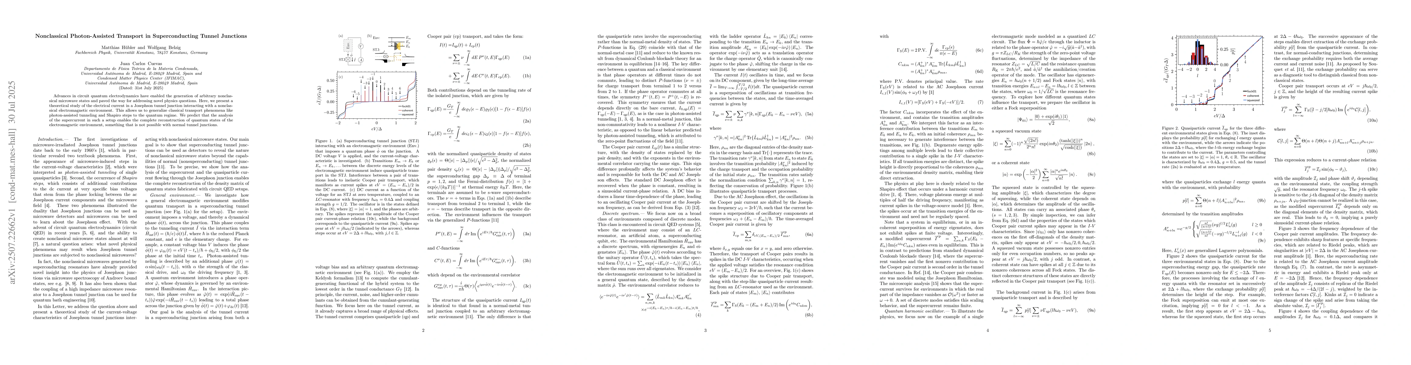 The paper presents a theoretical framework for analyzing quantum transport in superconducting tunnel junctions interacting with nonclassical electromagnetic environments, generalizing classical transport phenomena to the quantum regime.
