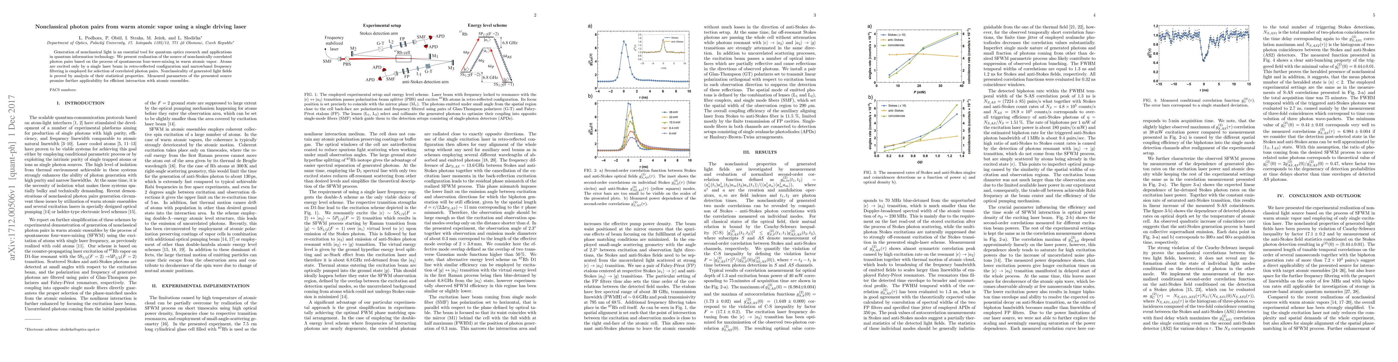 This paper details the creation of a source for nonclassically correlated photon pairs via spontaneous four-wave-mixing in warm atomic vapor, excited by a single retro-reflected laser beam. The nonclassicality is validated through statistical analysis, highlighting its potential for quantum information technology applications.