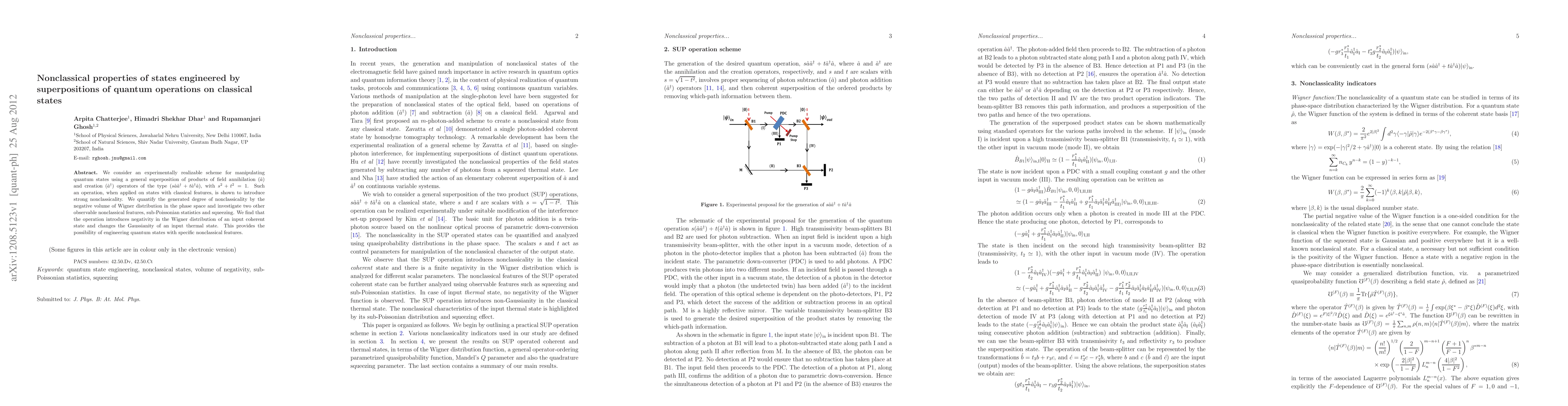 This paper presents a scheme to manipulate quantum states using a superposition of quantum operations, which introduces strong nonclassical properties such as negativity in the Wigner distribution and sub-Poissonian statistics, enhancing the ability to engineer quantum states with desired nonclassical features.