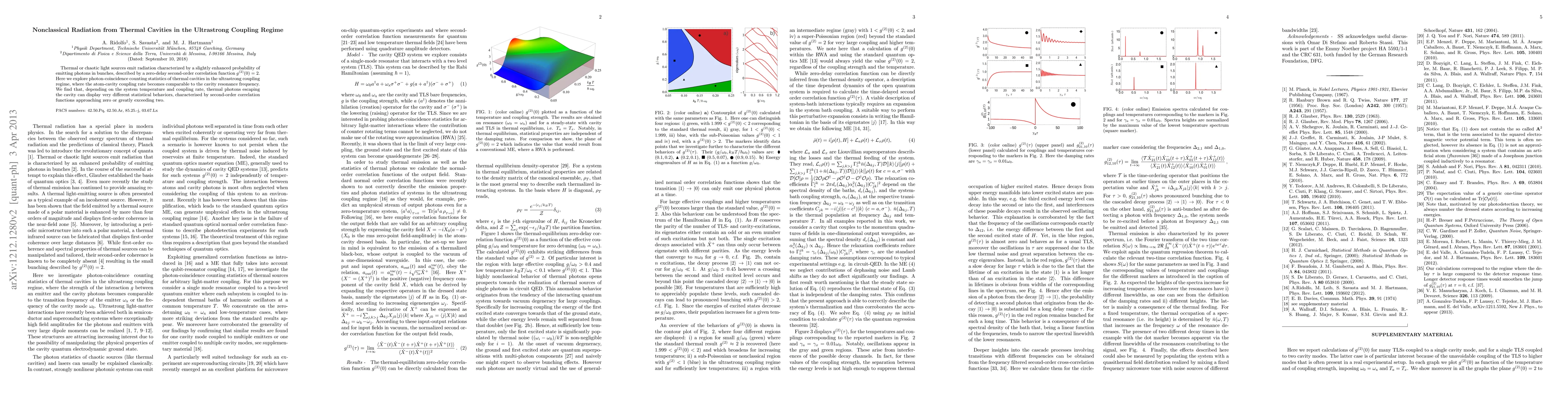 This paper investigates the photon-coincidence statistics of thermal cavities in the ultrastrong coupling regime, revealing that thermal photons can exhibit nonclassical radiation behaviors with second-order correlation functions varying significantly from the typical value of 2, depending on temperature and coupling rate.