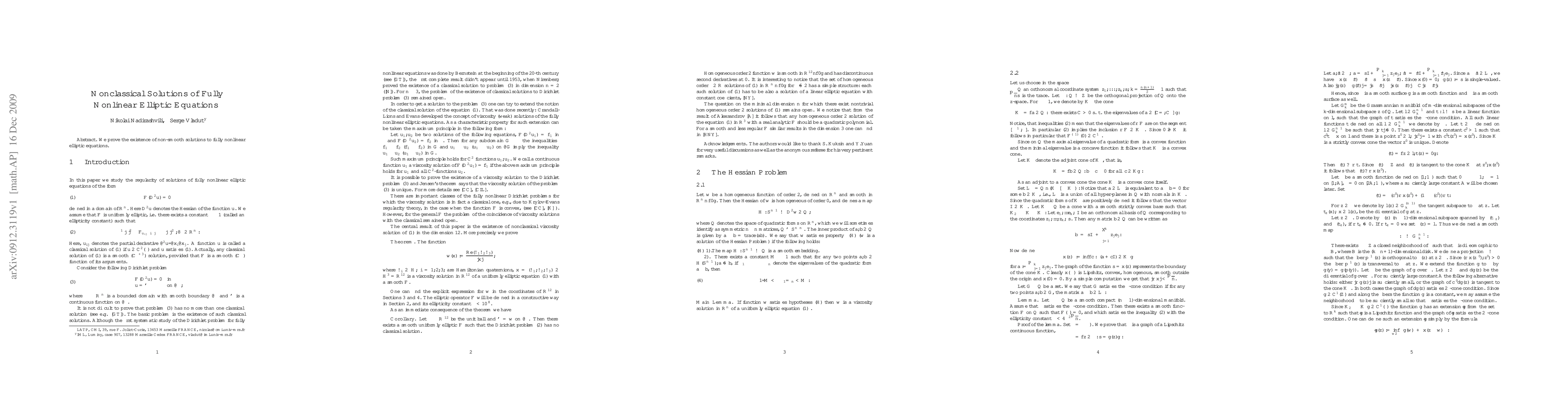 Summary: This paper establishes the existence of non-classical, non-smooth solutions to fully nonlinear uniformly elliptic equations, expanding the scope of known solutions beyond classical smooth functions.