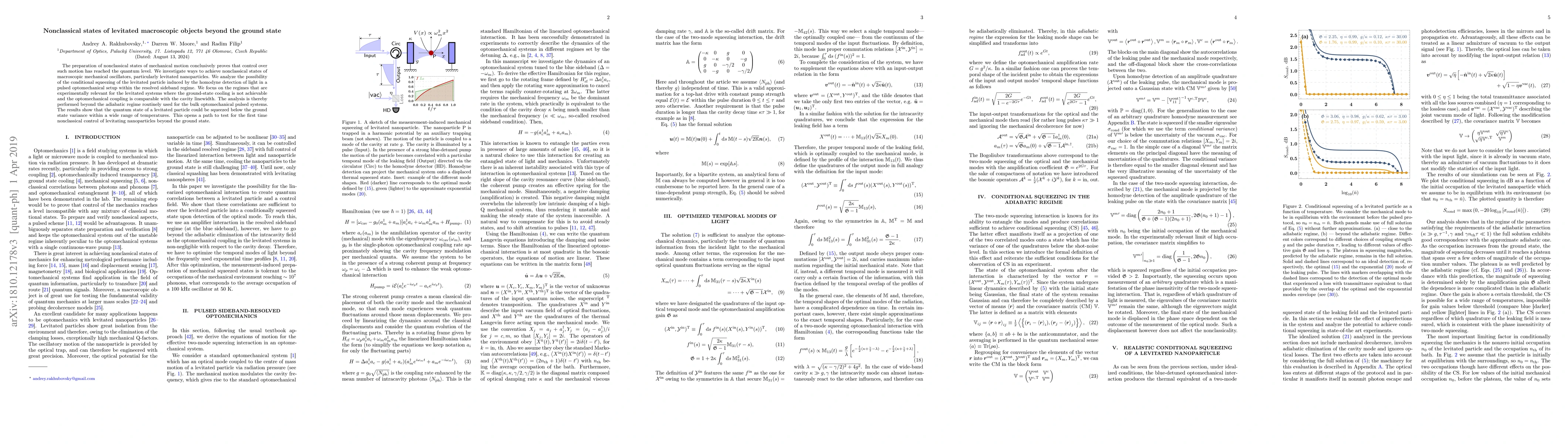 The research demonstrates methods to create nonclassical states in macroscopic mechanical oscillators, specifically levitated nanoparticles, even when ground-state cooling isn't achievable. The study shows squeezing of a levitated particle's quantum state below ground state variance, paving the way for testing quantum control of levitating nanoparticles beyond the ground state.