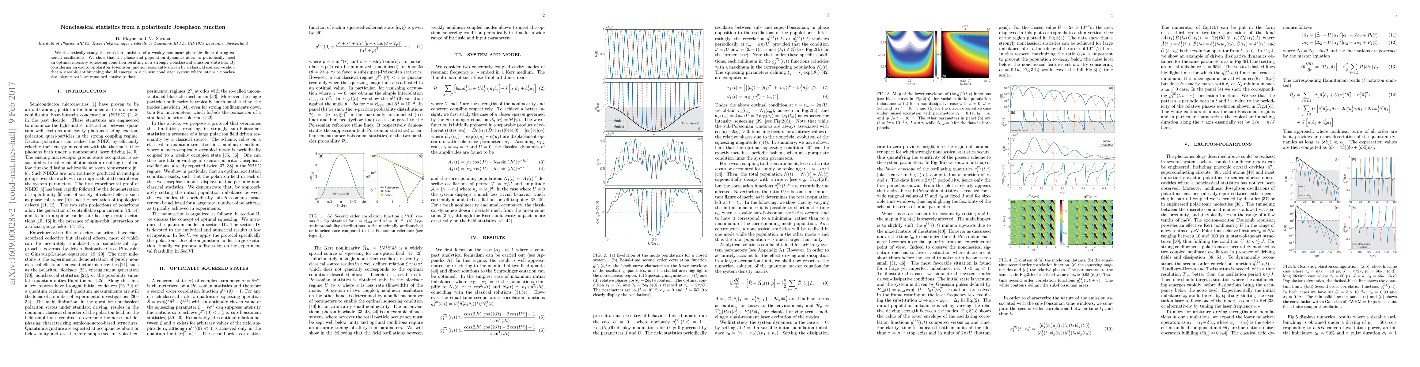 This paper theoretically explores the emission statistics from a polaritonic Josephson junction, demonstrating that coherent oscillations can lead to optimal intensity squeezing and strongly nonclassical emission. It reveals that an exciton-polariton junction driven by a classical source can exhibit significant antibunching, uncovering intrinsic nonclassical signatures in semiconductor systems.
