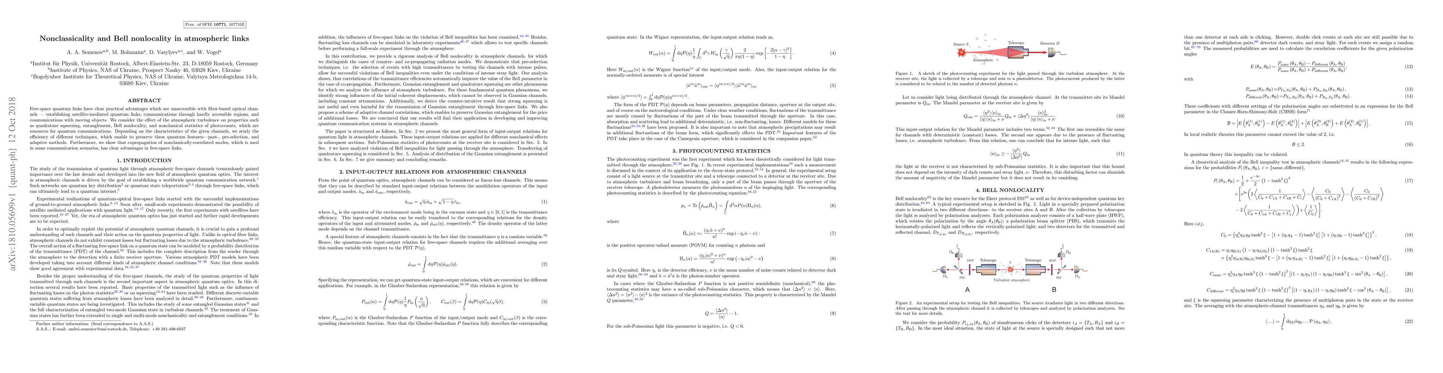Free-space quantum links have clear practical advantages which are unaccessible with fiber-based optical channels --- establishing satellite-mediated quantum links, communications through hardly accessible regions, and communications with moving objects. We consider the effect of the atmospheric turbulence on properties such as quadrature squeezing, entanglement, Bell nonlocality, and nonclassical statistics of photocounts, which are resources for quantum communications. Depending on the characteristics of the given channels, we study the efficiency of different techniques, which enable to preserve these quantum features---post-, pre-selection, and adaptive methods. Furthermore, we show that copropagation of nonclassically-correlated modes, which is used in some communication scenarios, has clear advantages in free-space links.