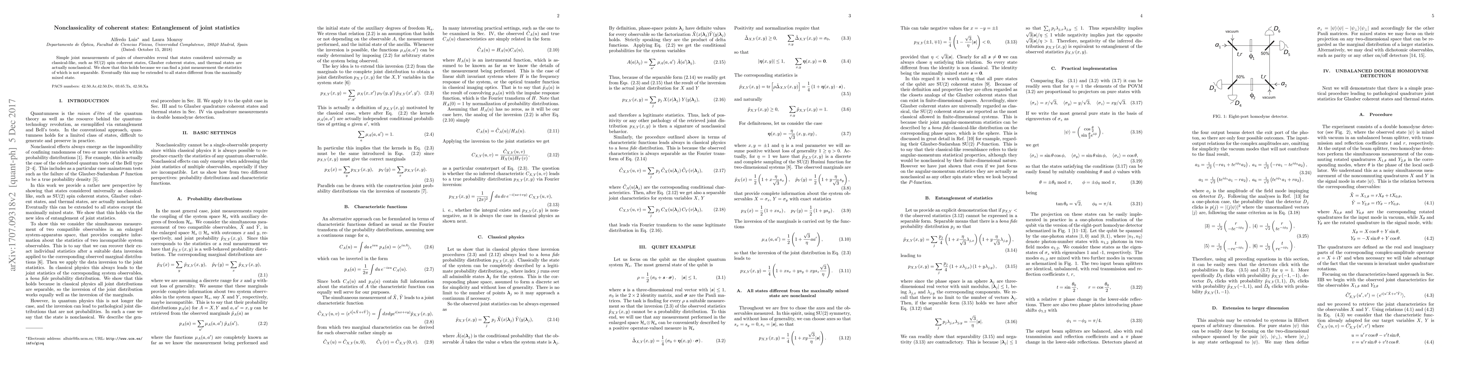 This paper demonstrates that coherent states, typically viewed as classical, exhibit nonclassical behavior through joint measurements revealing non-separable statistics, indicating their entanglement and potential nonclassicality. This finding suggests a broader applicability to states other than the maximally mixed state.