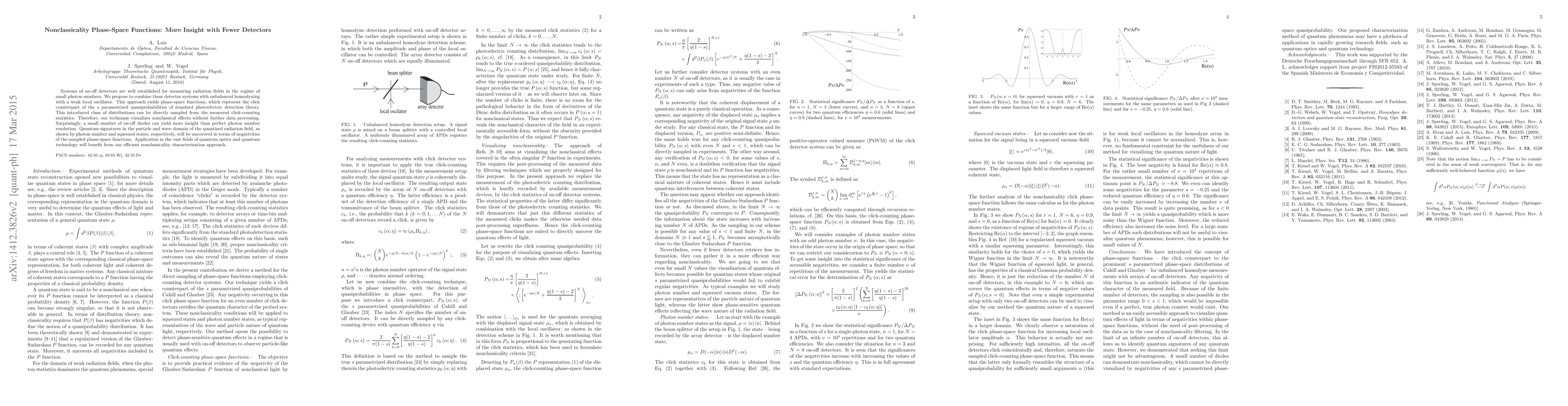 Systems of on-off detectors are well established for measuring radiation fields in the regime of small photon numbers. We propose to combine these detector systems with unbalanced homodyning with a weak local oscillator. This approach yields phase-space functions, which represent the click counterpart of the s parametrized quasiprobabilities of standard photoelectric detection theory. This introduced class of distributions can be directly sampled from the measured click counting statistics. Therefore, our technique visualizes nonclassical effects without further data processing. Surprisingly, a small number of on-off diodes can yield more insight than perfect photon number resolution. Quantum signatures in the particle and wave domain of the quantized radiation field, as shown by photon number and squeezed states, respectively, will be uncovered in terms of negativities of the sampled phase-space functions. Application in the vast fields of quantum optics and quantum technology will benefit from our efficient nonclassicality characterization approach.