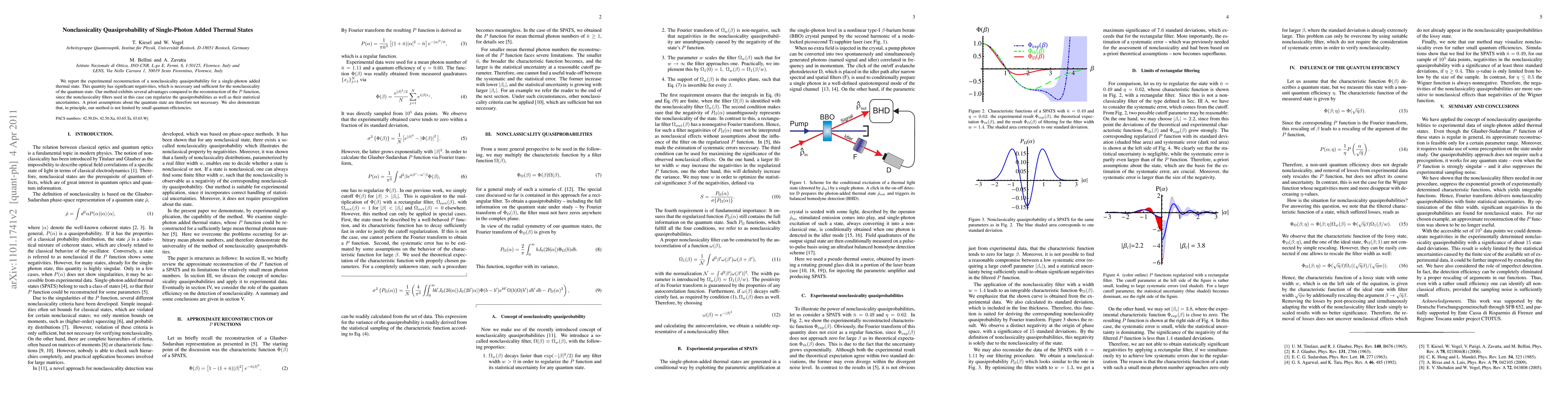 The paper presents an experimental method to reconstruct nonclassicality quasiprobability for single-photon added thermal states, revealing significant negativities indicative of quantum nonclassicality, without requiring a priori assumptions about the state and offering advantages over traditional P function reconstruction. The proposed method is robust even under low quantum efficiencies.